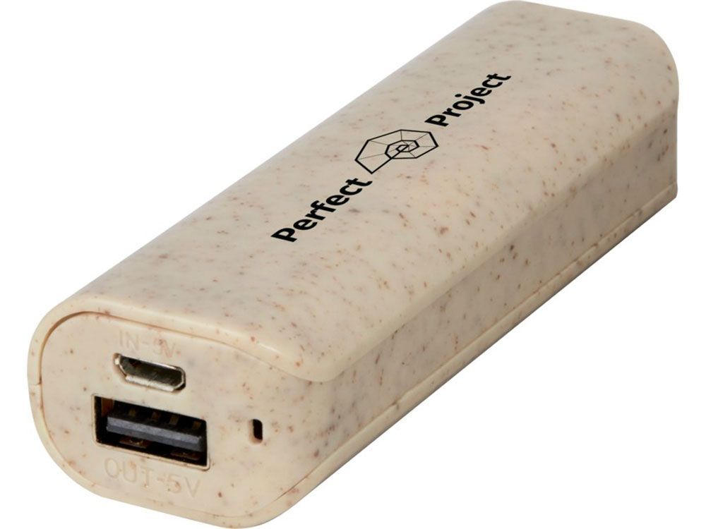 Легкое и компактное портативное зарядное устройство емкостью 1200 мАч изготовлено из смеси пшеничной соломы и пластика ABS, что позволяет сократить количество используемого пластика. Выходная мощность USB: 5 В/1 А. Для обеспечения устойчивости вспомогательные кабели не предусмотрены.